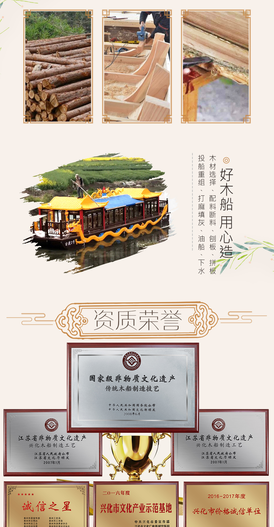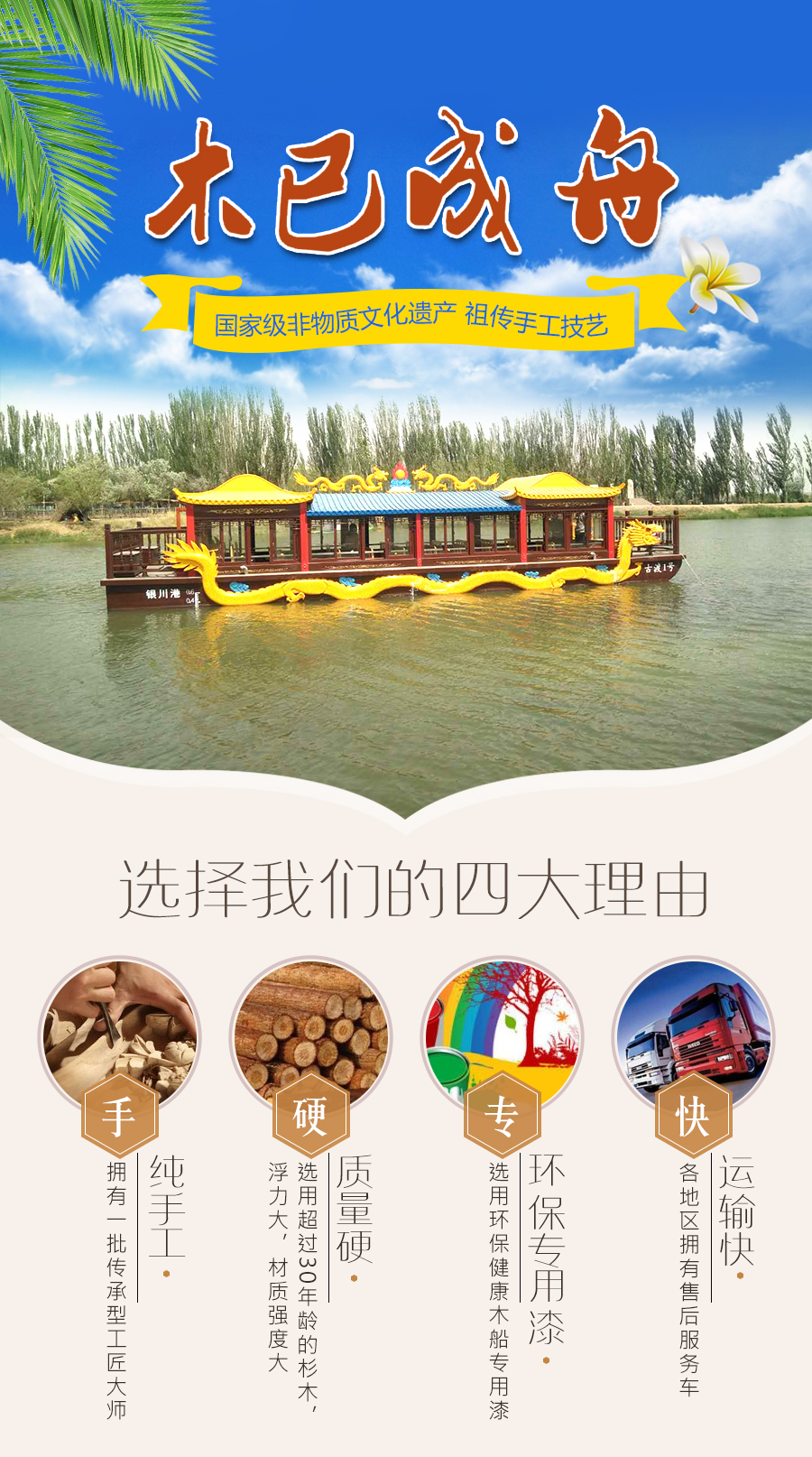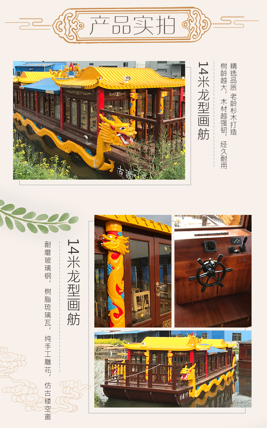 周氏仿古电动游船45人大型画舫船厂家定制旅游观光木船农庄餐饮船