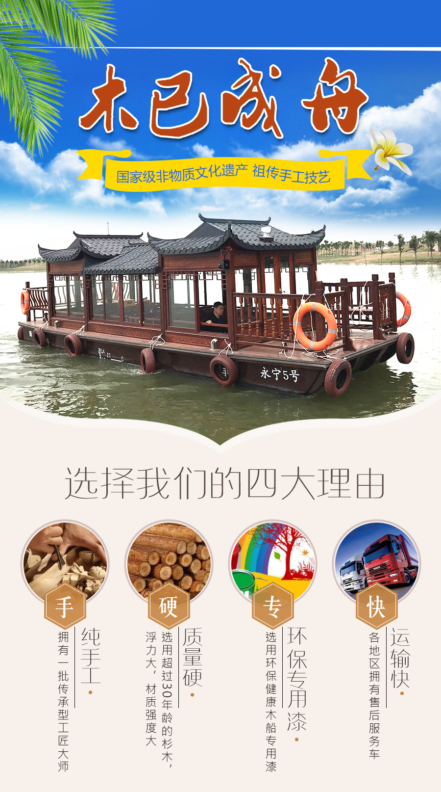 周氏24人旅游景区码头观光单层画舫船10米仿古电动游船支持定制