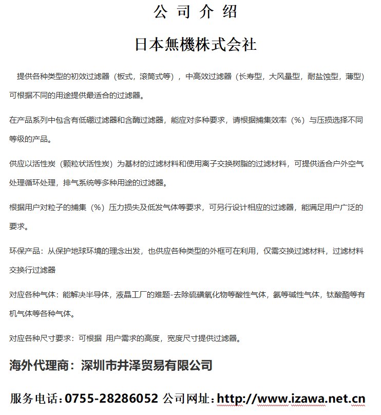 半导体行业NIPPONMUKI日本无机AST-36-90空气过滤器