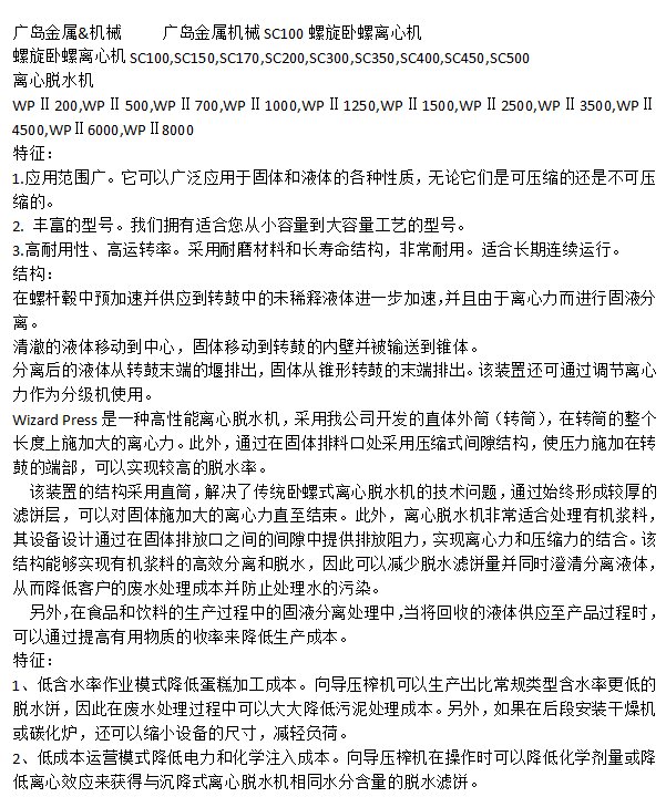 广岛金属&机械螺旋卧螺离心机SC100高效耐用 品牌 | 广岛金属&机械 | ||