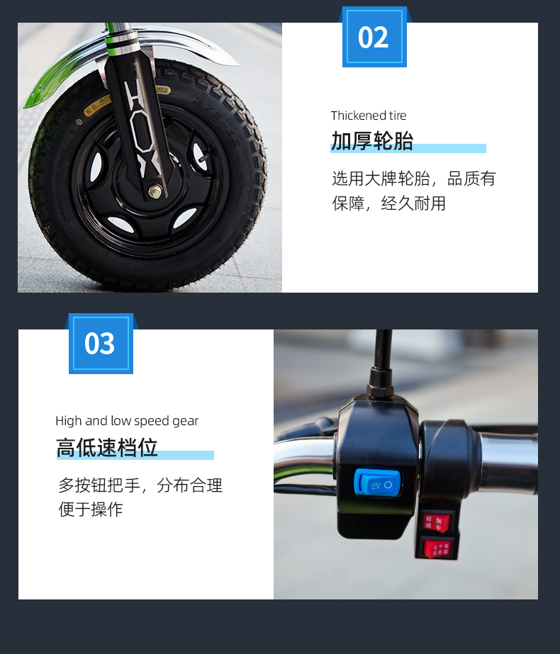 刹车方式 | 脚踩机械连杆鼓式后轮制动 | ||