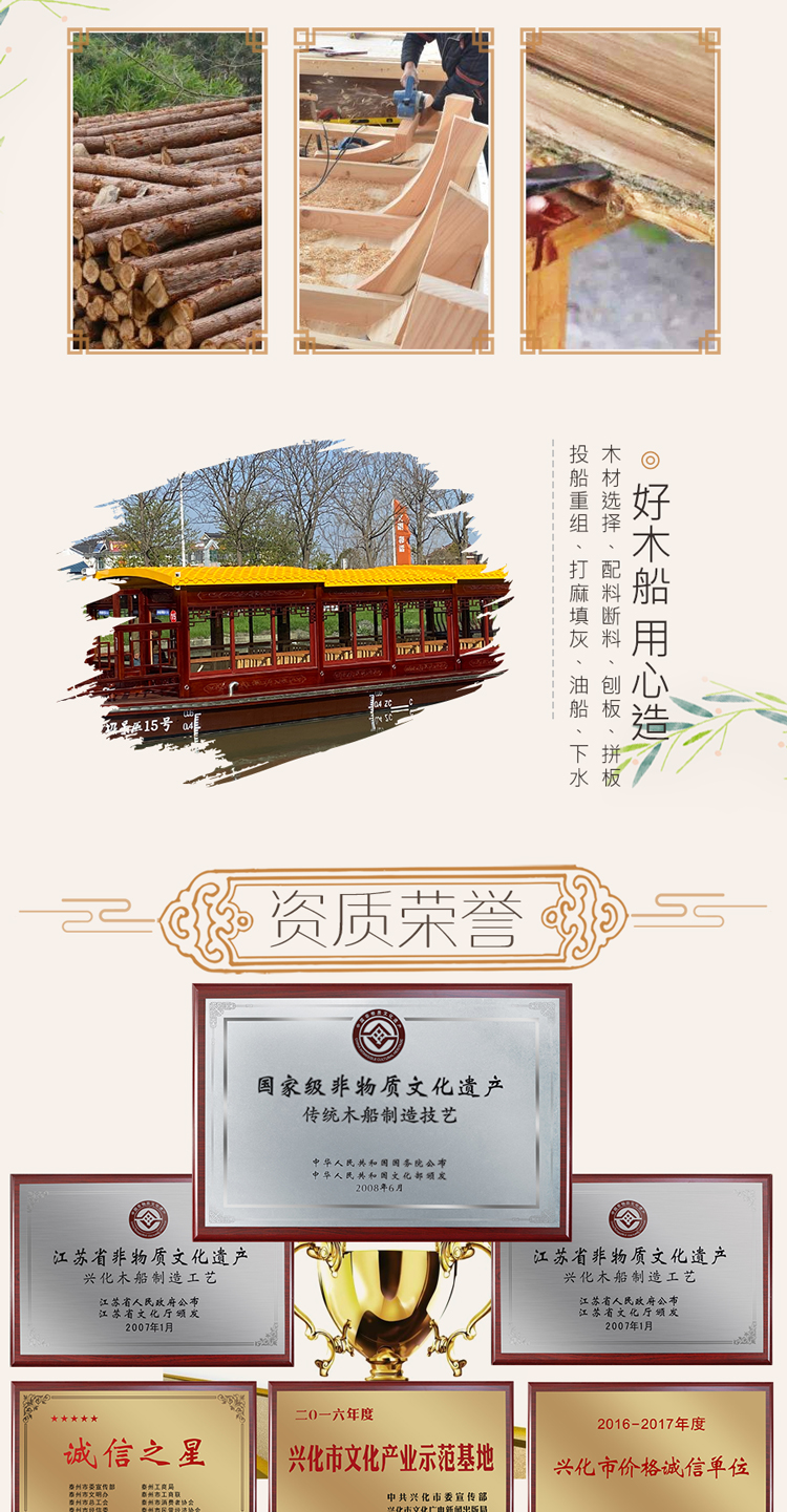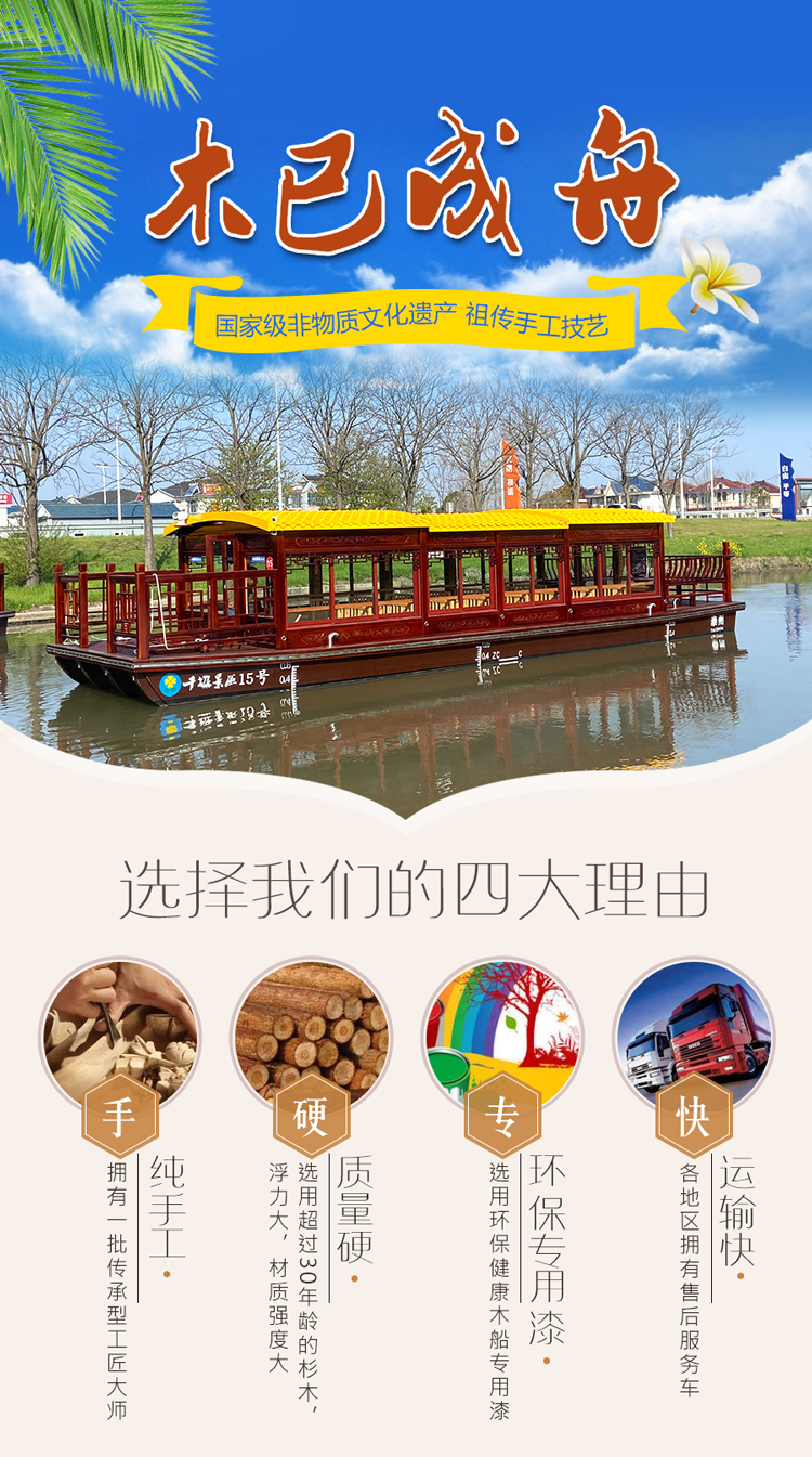 景区仿古12.58米单层画舫船旅游观光电动船木质豪华餐饮船