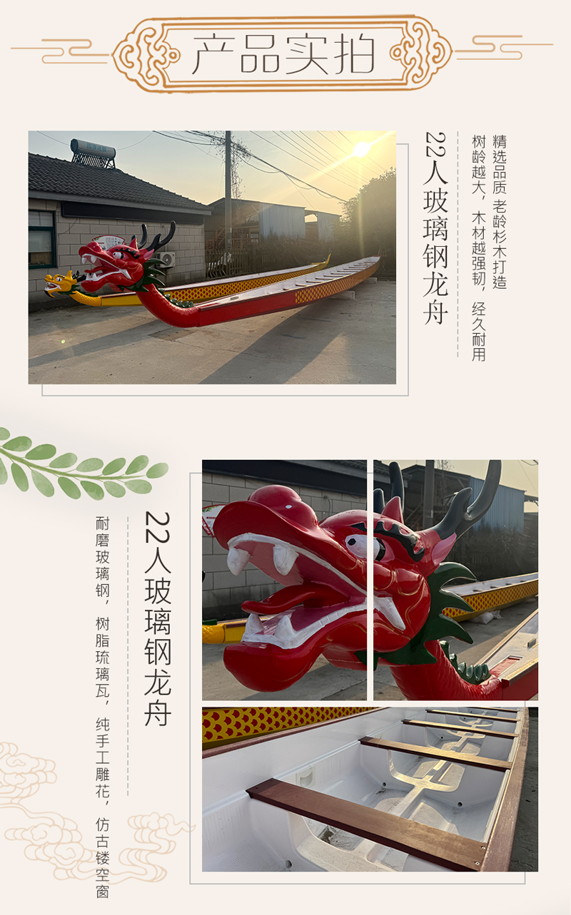 周氏木业端午手划竞技玻璃钢龙舟船国标比赛下水龙船