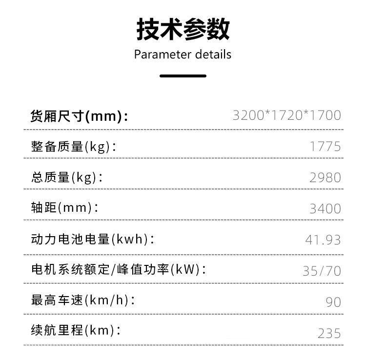货厢内部尺寸(mm) | 3200*1720*1700 | ||
