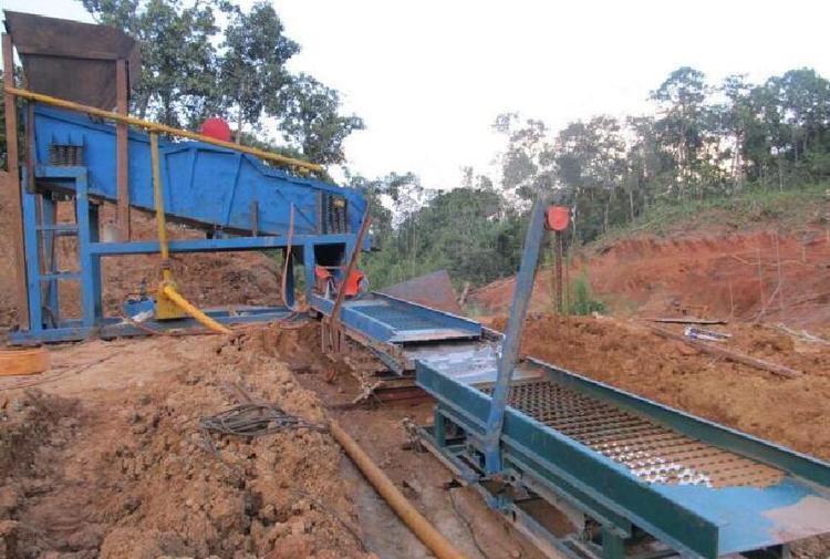 采砂设备从河床底部抽取一定浓度的沙水混合物,并将其注入装有特殊吸金物质的皮带溜槽中,靠高压水流将废料冲出,沙金留在吸金物上然后自动存入储金仓。本设备由一台动力同时完成抽沙、淘金工作。