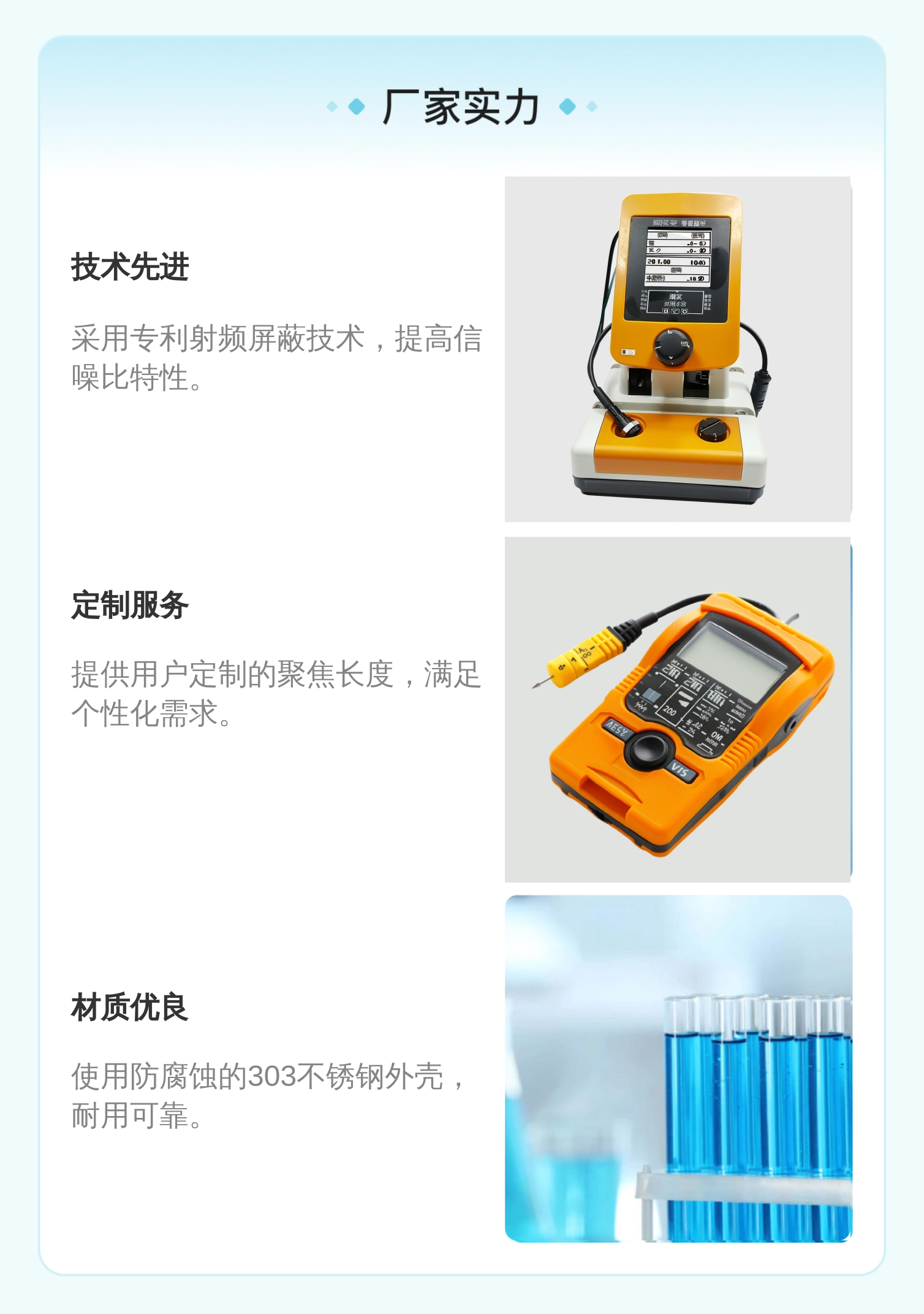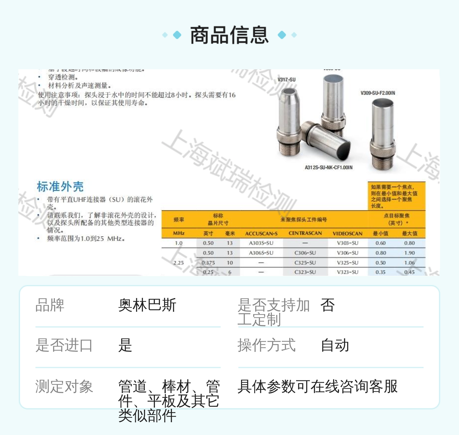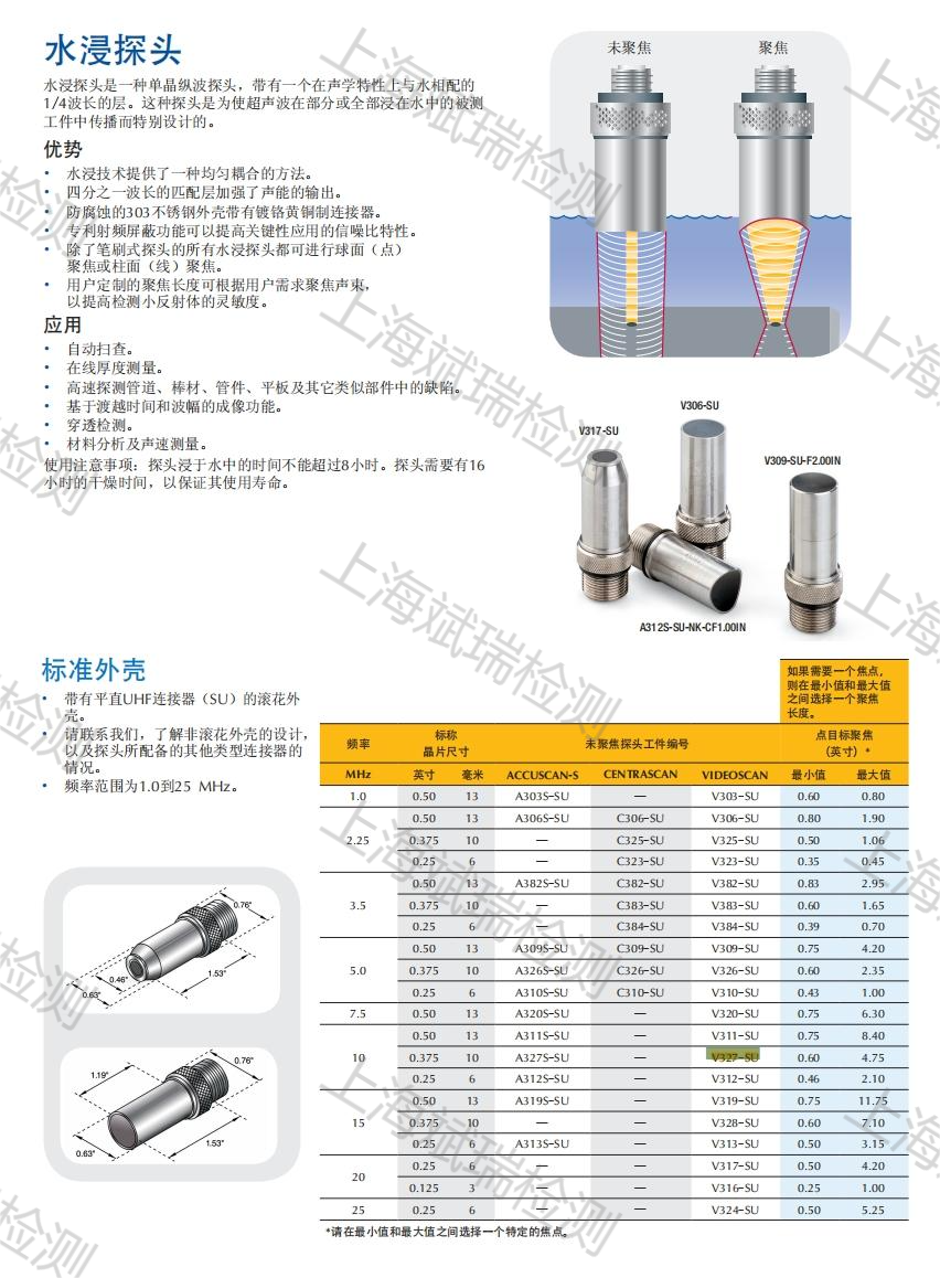 探头特性 | 未聚焦或可定制聚焦 | ||