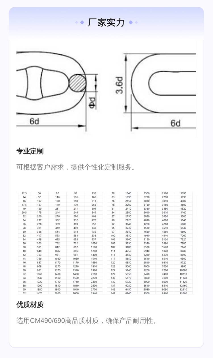 产品特性 | 锚链 | ||