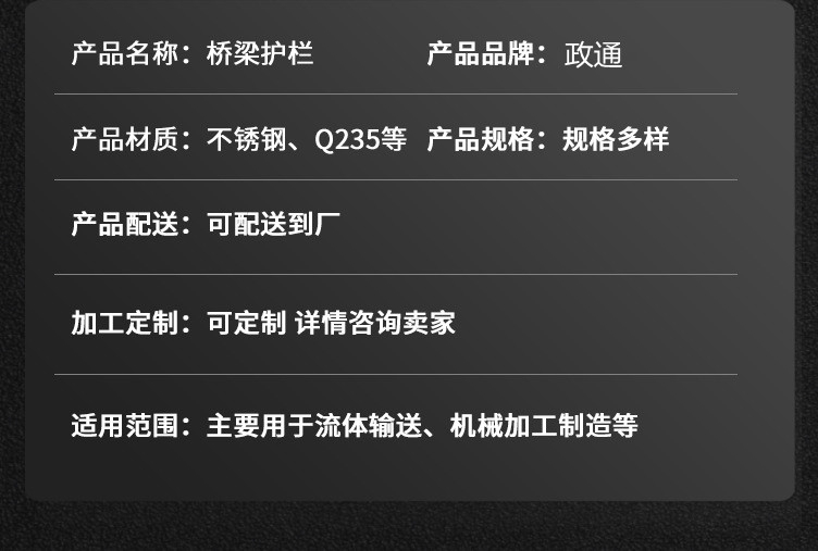 深州市政通交通设施有限公司,是一家专业致力于交通设施、安防设施、波形护栏、桥梁护栏、销售和维护的企业,产品有公路护栏、道路护栏、隔音屏、护栏板、等系列。我公司拥有,专业的核心队伍和严格的质量监管体系,对产品质量进行严格把控。