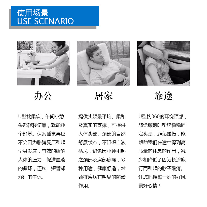 植绒充气u型枕便携式旅行U型枕护颈枕头生产厂家支持定制
