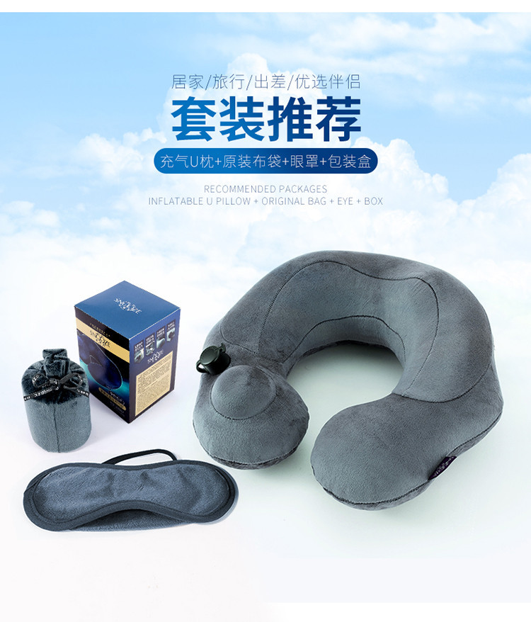 颈椎宝U型枕按压自动充气护颈枕水晶绒休闲靠枕生产厂家