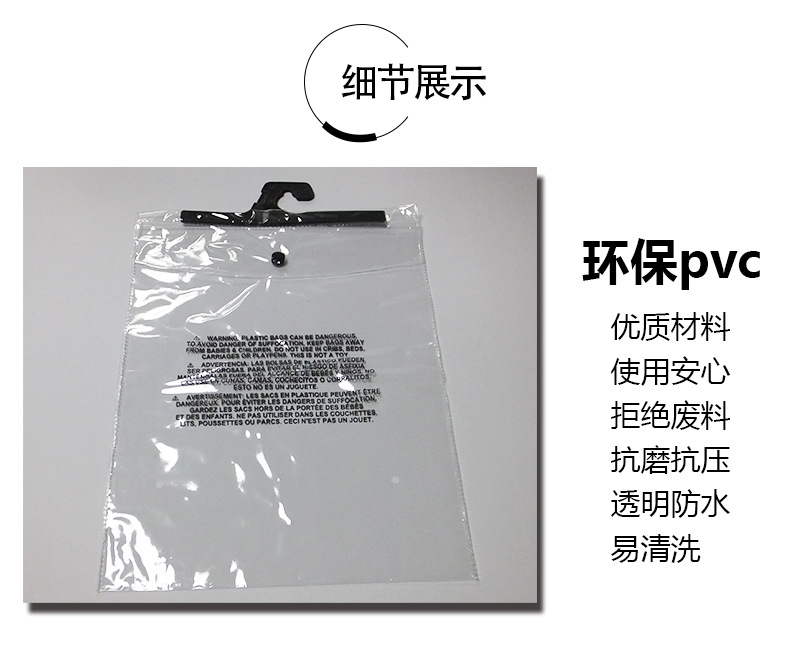环保PVC透明挂钩袋塑料薄膜袋T恤包装袋纽扣袋厂家直售