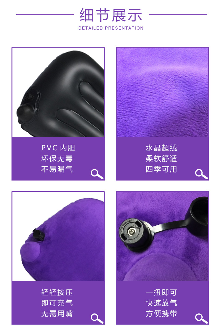 按压充气枕飞机枕头床头靠垫水晶毛绒腰靠腰枕定制厂家