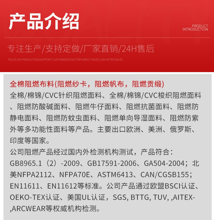 成分 | 100全棉,88/12棉锦,CVC80棉20涤,腈棉60腈纶40棉 | ||