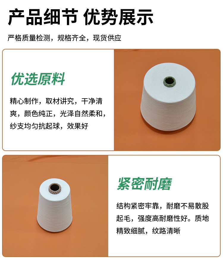 皮马棉30/奥棉 胚纱 色纱 泽宇纺织 苏皮马 有机棉精梳纱线紧密纺 主要原料 | 匹马棉 | ||