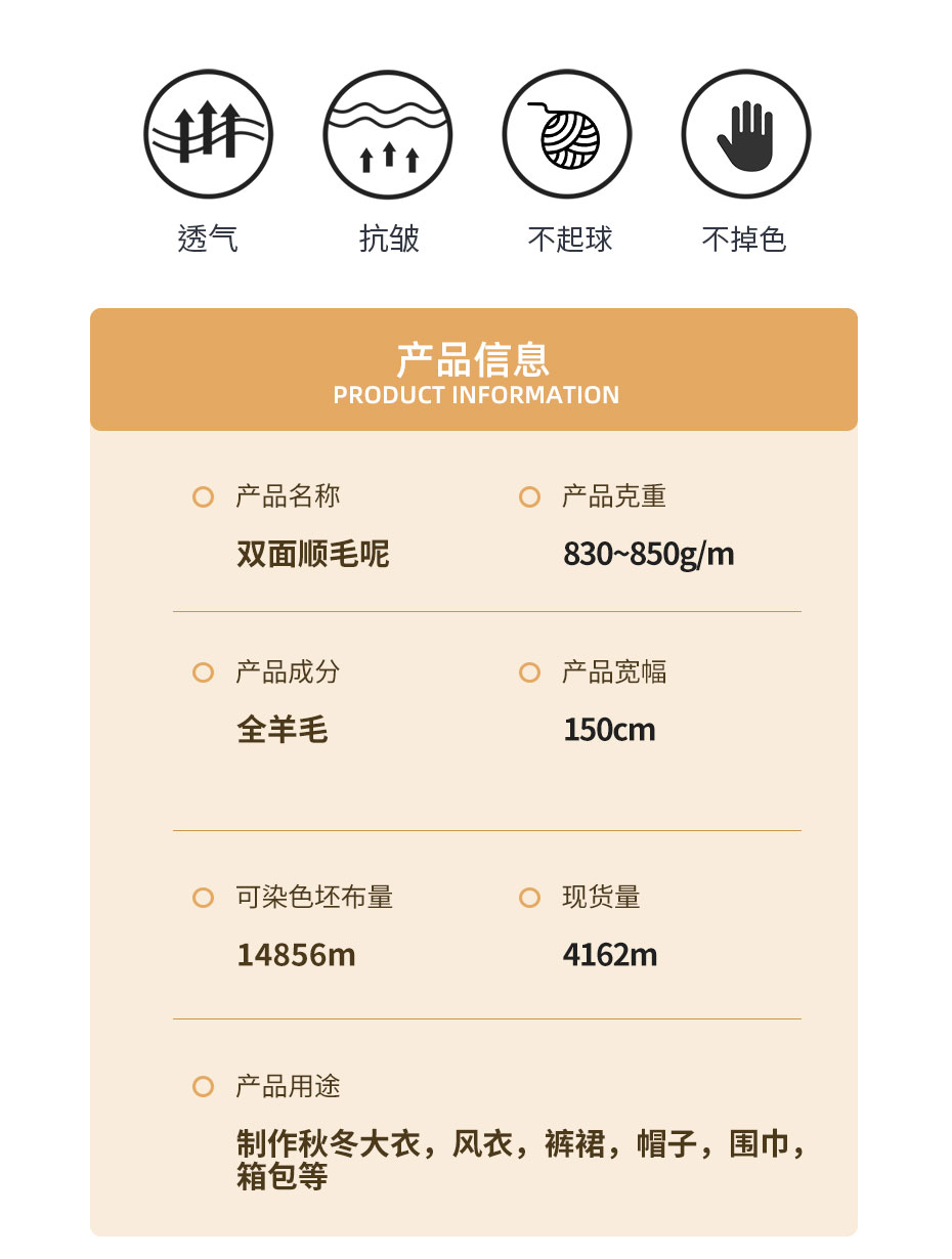 具体用途 | 制作秋冬大衣、风衣、裤裙、帽子、围巾、箱包等 | ||