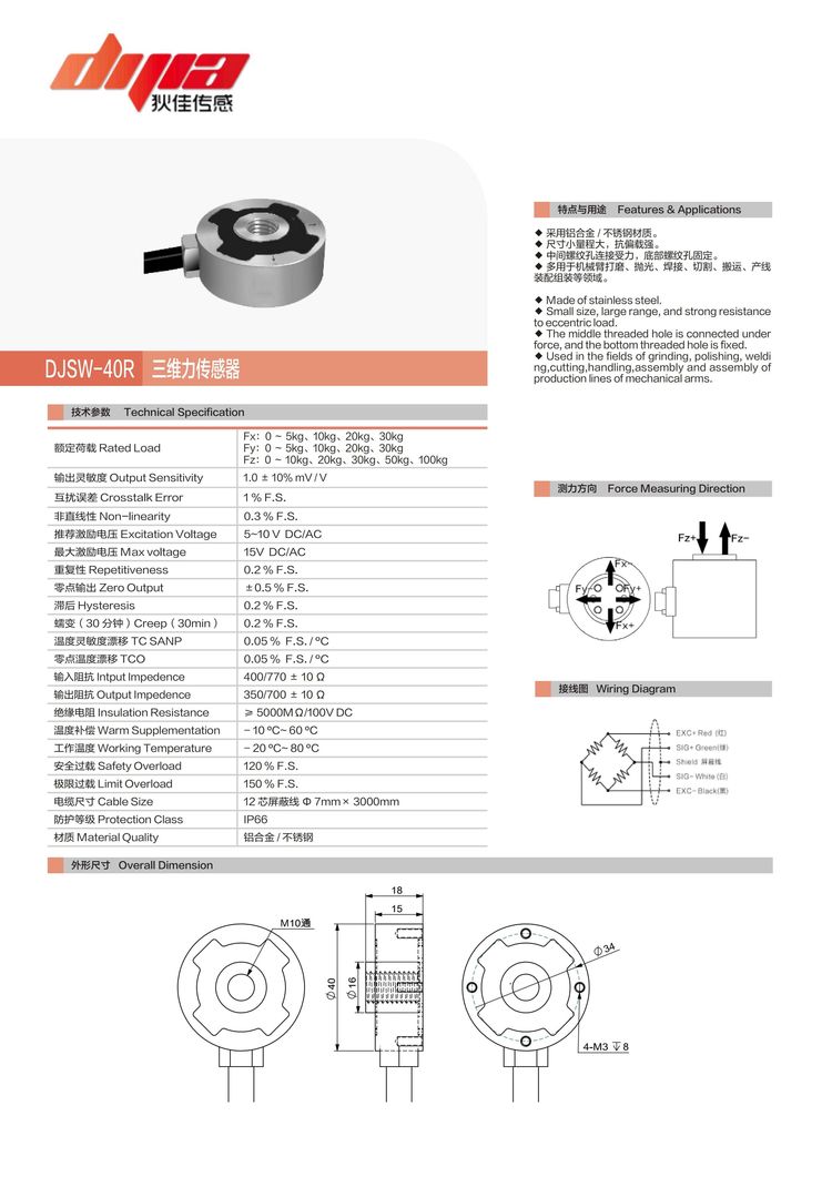 额定载荷:Fx:0~30kg Fy:0~30kg Fz:0~100kg