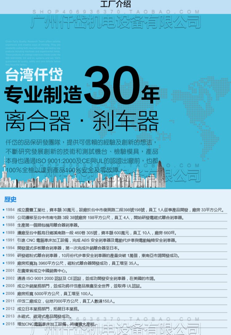 4.离合器线圈的电压波动不超过 5℅和-15℅的额定电压。
