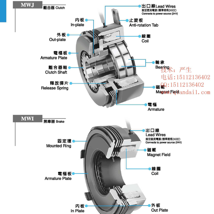 4.离合器线圈的电压波动不超过 5℅和-15℅的额定电压。