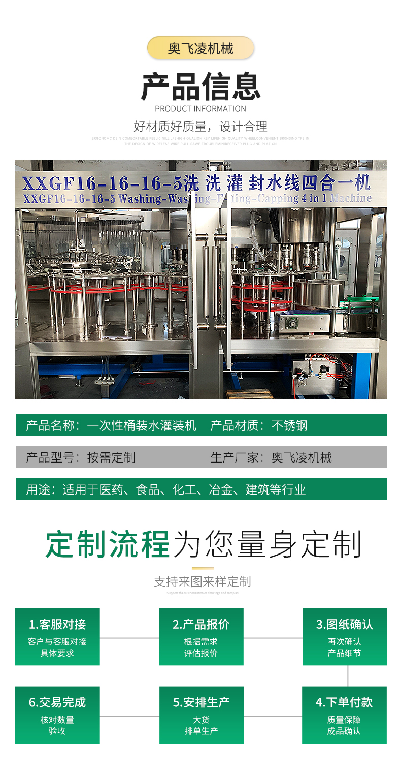灌装机一次性桶装水灌装设备全自动大桶水液体灌装生产线奥飞凌