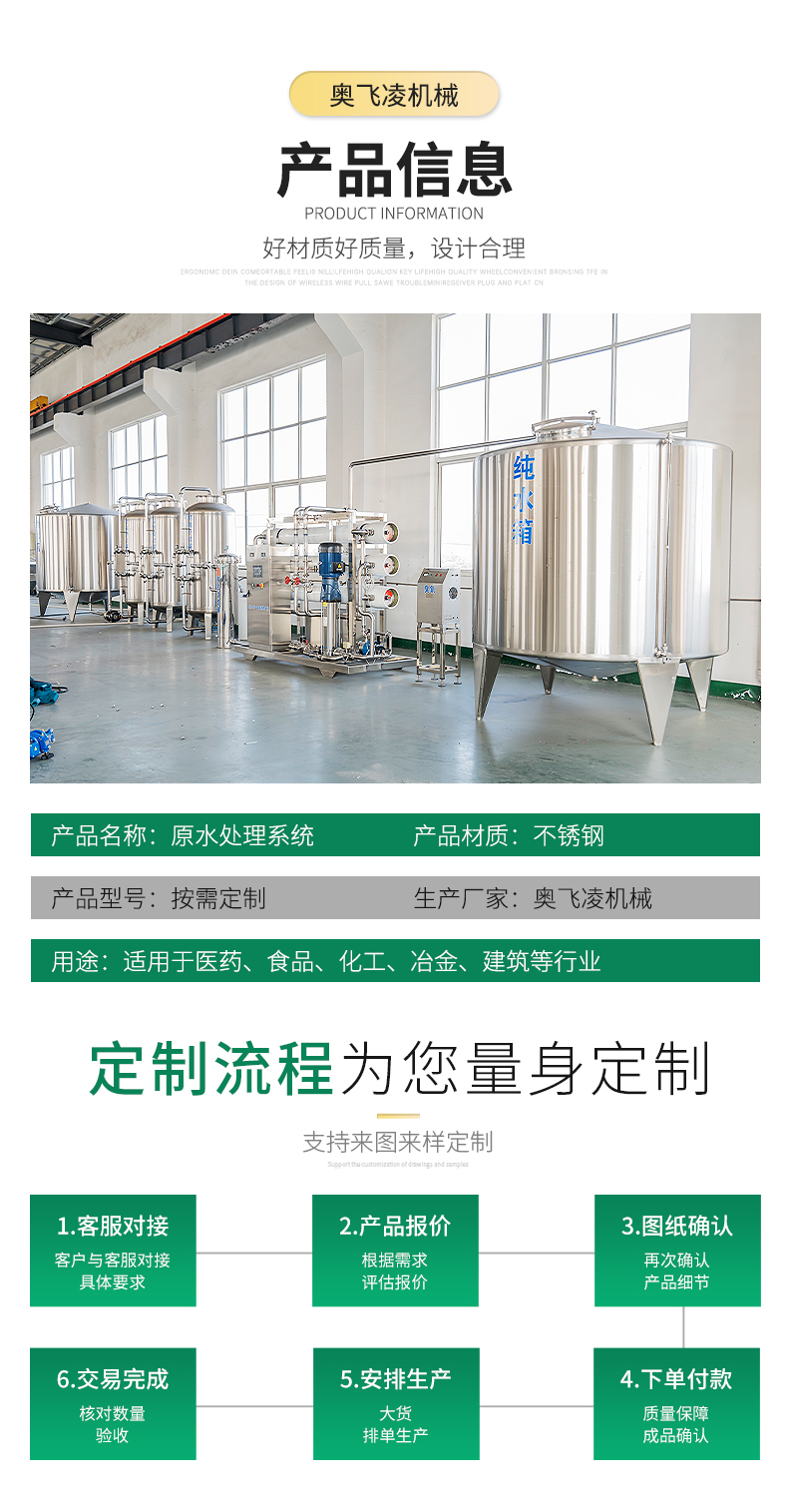 原水处理系统RO反渗透超滤设备纯净水饮用水净化设备奥飞凌定制