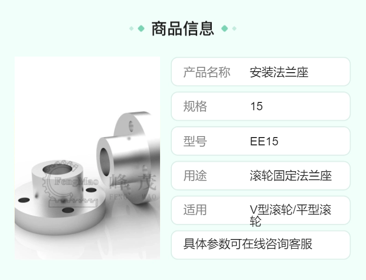 峰茂V型/平型导轨滚轮偏心/正心15 20 25 35安装固定用法兰座 是否支持加工定制