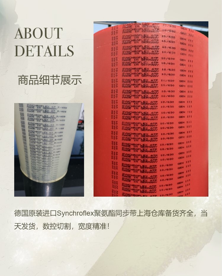 ? 浇注聚氨酯同步带准确代表了精密工程模具。整个皮带的节距精度高。该技术尤其适合于要求角精度高、运行平稳、转速快和使用寿命长的应用。