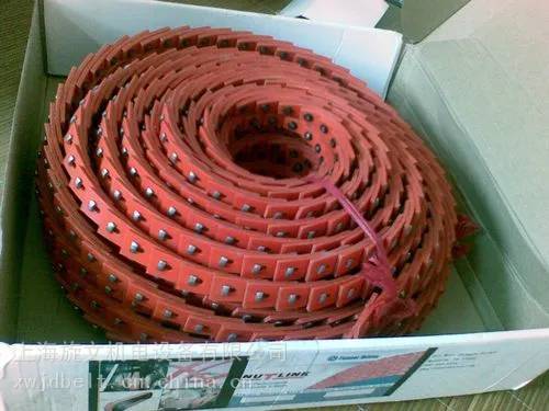 橘红色有钉活络带 红色无钉活络带 活络带在颜色上主要有橘红色活络带、朱红色活络带,蓝紫色活络带几种,橘红色一般情况是带钉活络带,红色为无钉活络带,蓝紫色是高马力活络带。在机构上又有穿孔式活络带、T扣式活络带,窄V式活络带。穿孔式活络带:扭锁式易用设计、胜任每天繁重工作、特别适用于M/A/B/C/D/3L型传动,T扣式活络带:快速T扣式连接设计、当你需要更多传动力的时候、特别适用于重负荷、有震动的场合和往复式运动传动装置。窄V式活络带主要适用于各种复杂的使用环境,机械性强,很适合在高速中传动。