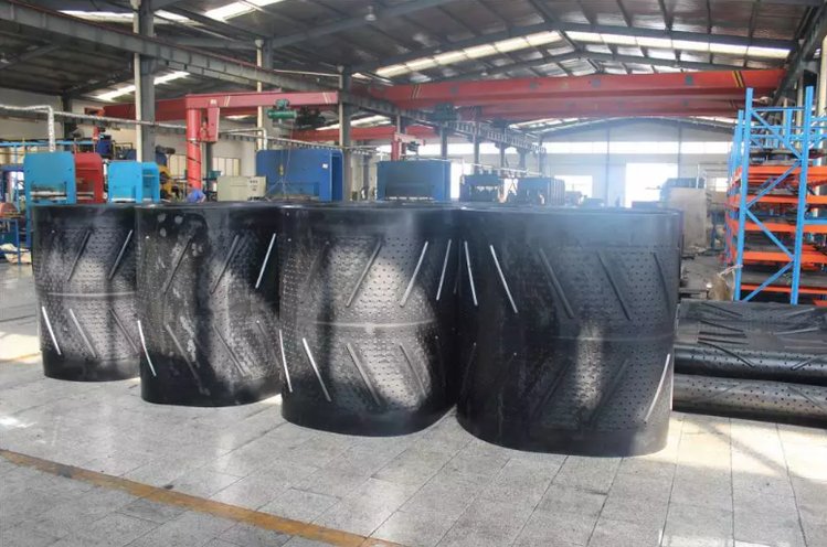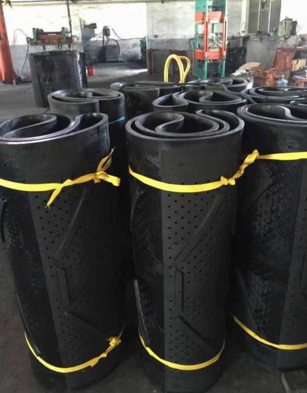 抛丸机橡胶履带采用先进工艺制作而成、采用进口天然橡胶、选用上乘原料,精心调配,含胶量高达60以上,拉伸强度达20兆帕以上;带芯用多层骨架织物缠绕成型,整体无接头。覆带胶采用高强度耐磨橡胶配方,使用寿命长,强度高、不跑偏、不打滑、不起皮、伸长小,耐磨度高、经久耐用、传动功率大、几何尺寸准确、屈挠性好、可交叉传动、定型硫化出的环形带,整体无喇叭口,带体厚度均匀,运行平稳,是铸造机械生产厂家装机使用的优先选择。