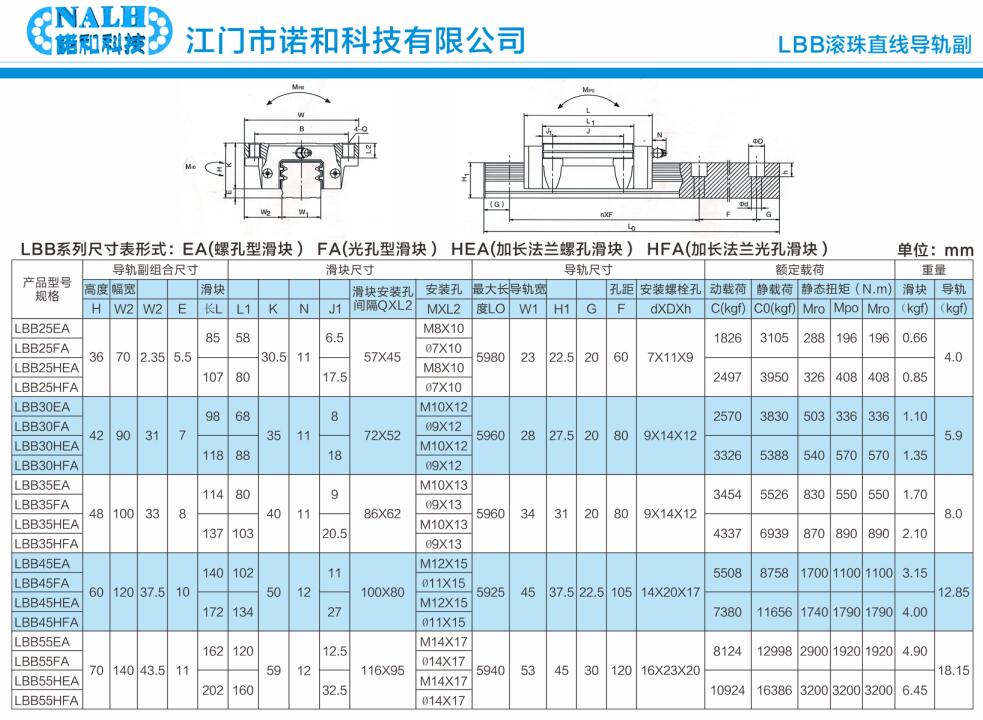 NALH(诺和)直线导轨性能特点: