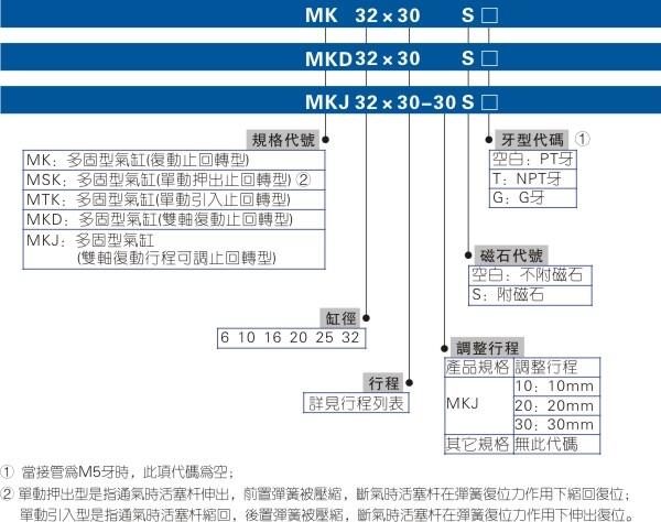 1.缸径:6、16、20、25、32等可选。每种缸径分别对应多种规格行程,方便选用。 |