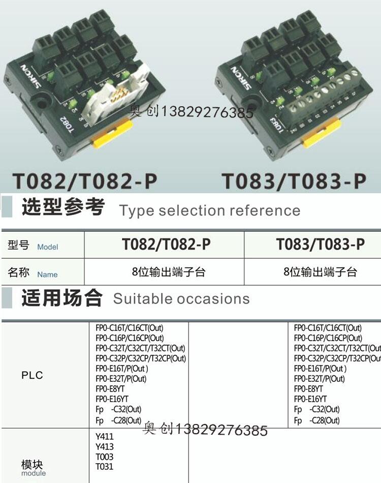 胜蓝SIRON8位输出接线端子台T082/T083-P可对应三菱FP0模块PLC24V