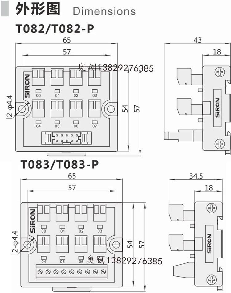 T083/T083-P配有8组2P信号输出口;使用10P端子台与控制器端连接,方便进行远程控制使用。