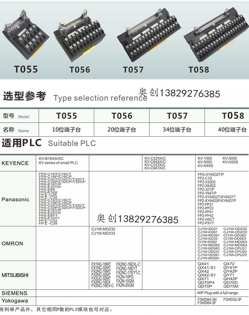 胜蓝SIRON弹片式端子台T055/T056输出输入10位20PMIL插头连接松下