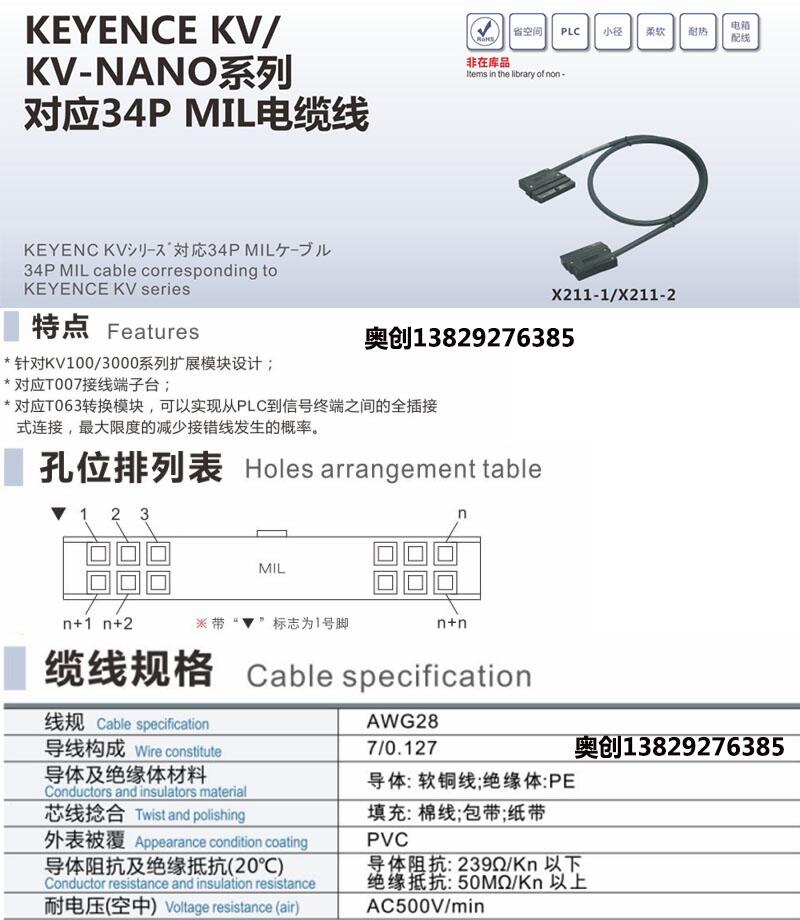 胜蓝基恩士系列对应34PMIL针对KV100/3000插接PNP电缆线 X211-1/2