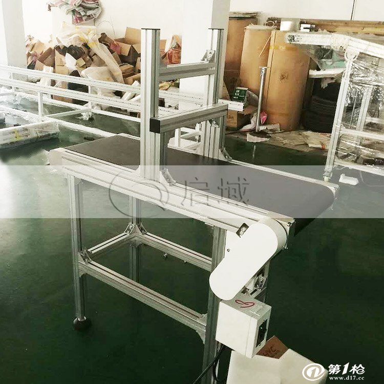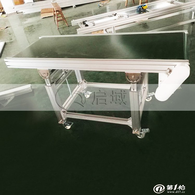 铝型材皮带输送机也叫带式输送机或胶带输送机,是组成有节奏的流水作业线所不可缺少的经济型物流输送设备。皮带机按其输送能力可分为重型皮带机如矿用皮带输送机,轻型皮带机如用在电子塑料,食品轻工,化工医药等行业。皮带输送机具有输送能力强,输送距离远,结构简单易于维护,能方便地实行程序化控制和自动化操作。运用输送带的连续或间歇运动来输送100KG以下的物品或粉状、颗状物品,其运行高速、平稳,噪音低,并可以上下坡传送。