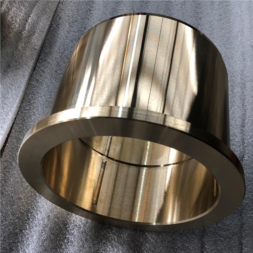 铜套,也称铜轴套,分为多种,包括机用铜辊、铜轴承等。用于各种轻工、大型、重型机械上,是机械上的重要组成件。产品具有传统的锡青铜轴承功能,以电解铜为原料配以多种微量金属元素,经高温烧结,通过气压离心铸造加工而成。硬度高,耐磨性极好,不易产生咬死现象,有较好的铸造性能和切削加工性能,在大气和淡水中有良好的耐蚀性。在缺乏润滑剂和用水质润滑剂条件下,滑动性和自润滑性能好,易切削,铸造性能差,对稀硫酸耐蚀性能好。一般用途的结构件,船舶、仪表等使用的外型简单的的铸件,如套筒、衬套、轴瓦、滑块等。