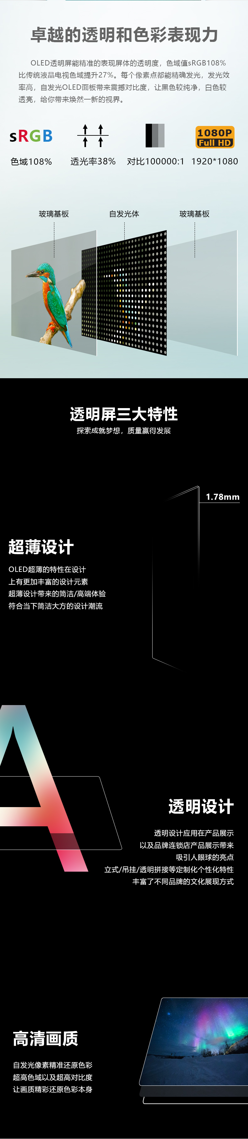起鸿30/48/55/77寸OLED透明玻璃显示屏幕 拼接透明屏幕RK-O55-ZTP6 型号 | RK-O55-ZTP6 | ||