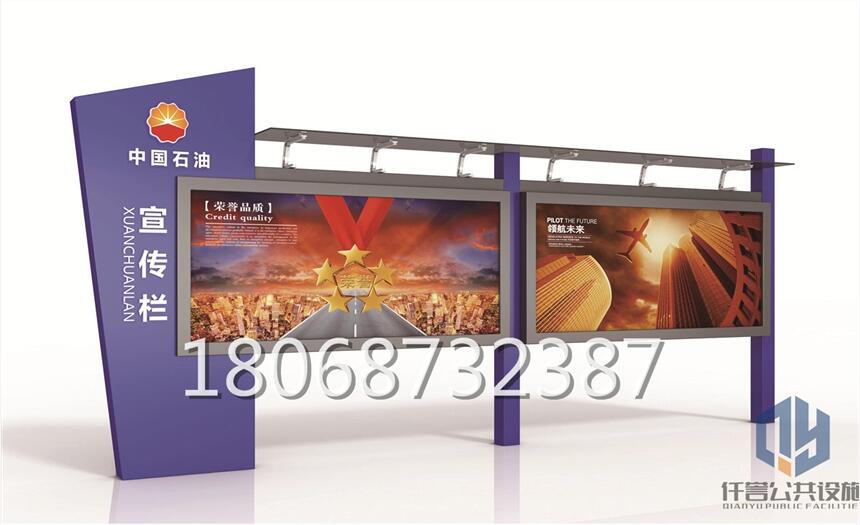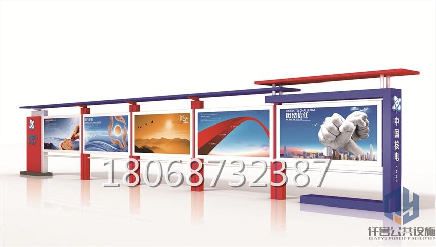 江苏仟誉公共设施有限公司,是一家专业制作室内外宣传栏,广告牌,公交站台等标牌的生产销售厂家。我公司装备齐全,专业的研发队伍,设计人员及生产人员,有专业的安装队伍及售后服务。公司建立有一套完备的管理系统,企业质保体系组织生产,保证了产品质量。我厂对售后服务极为重视,顾客的满意是我们一如既往的追求。 公司工程类业务以市政公交站台宣传栏,政府,企业,医院,学校,园林等等为主,按照不同客户要求生产不同材质的不锈钢宣传栏和镀锌板静电喷塑宣传栏。适时引进滚动系统和LED显示系统等新技术,推陈出新,完善灯箱使用功能,为打造城市化进程和提升城市形象作出积极贡献。