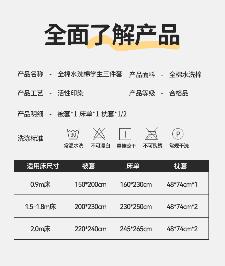 学生宿舍单人三件套床上用品全棉床单被罩枕套四件斜纹简约批发