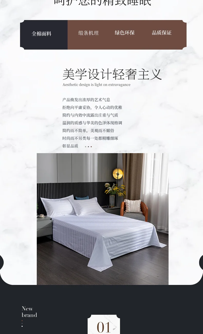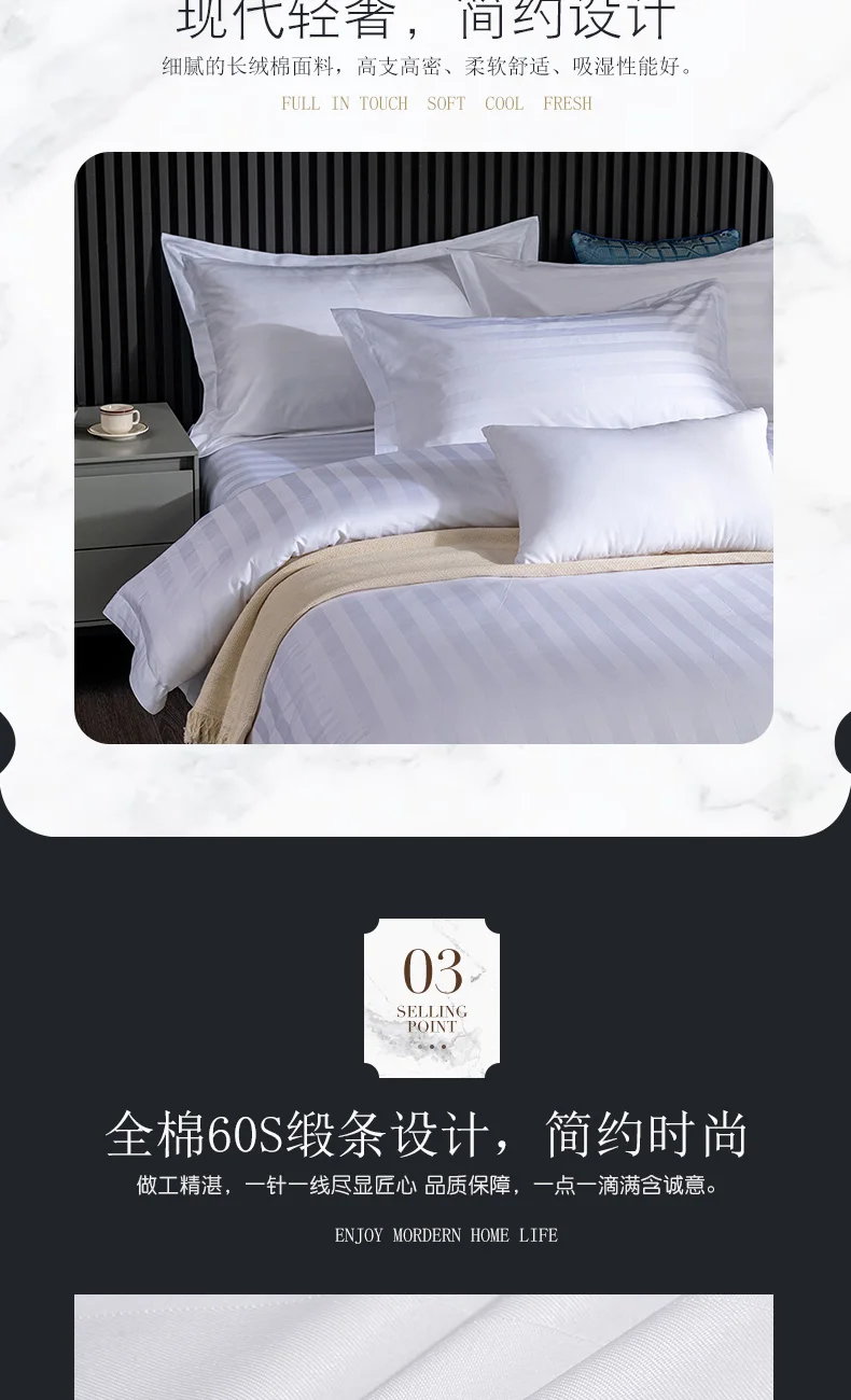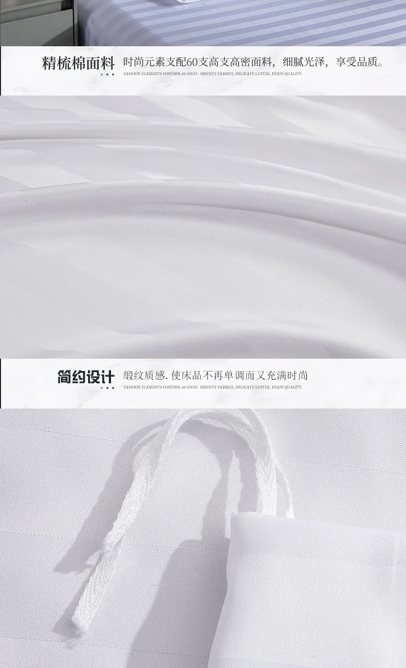 莫凡三公分缎条纯棉高档酒店布草专用宾馆民宿风全棉套件批发
