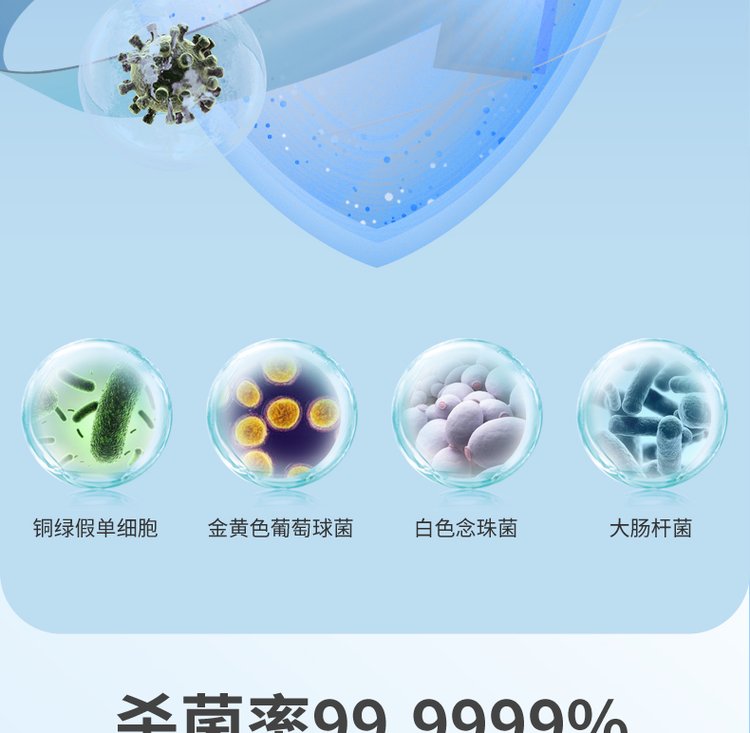 杀灭微生物类别 | 大肠杆菌、金黄色葡萄球菌、绿脓杆菌、白色念珠菌等 | ||