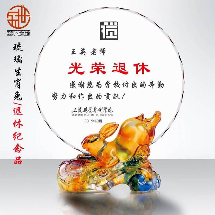 生肖琉璃退休离休纪念品学校老师单位职工退休礼品深圳琉璃水晶工艺品