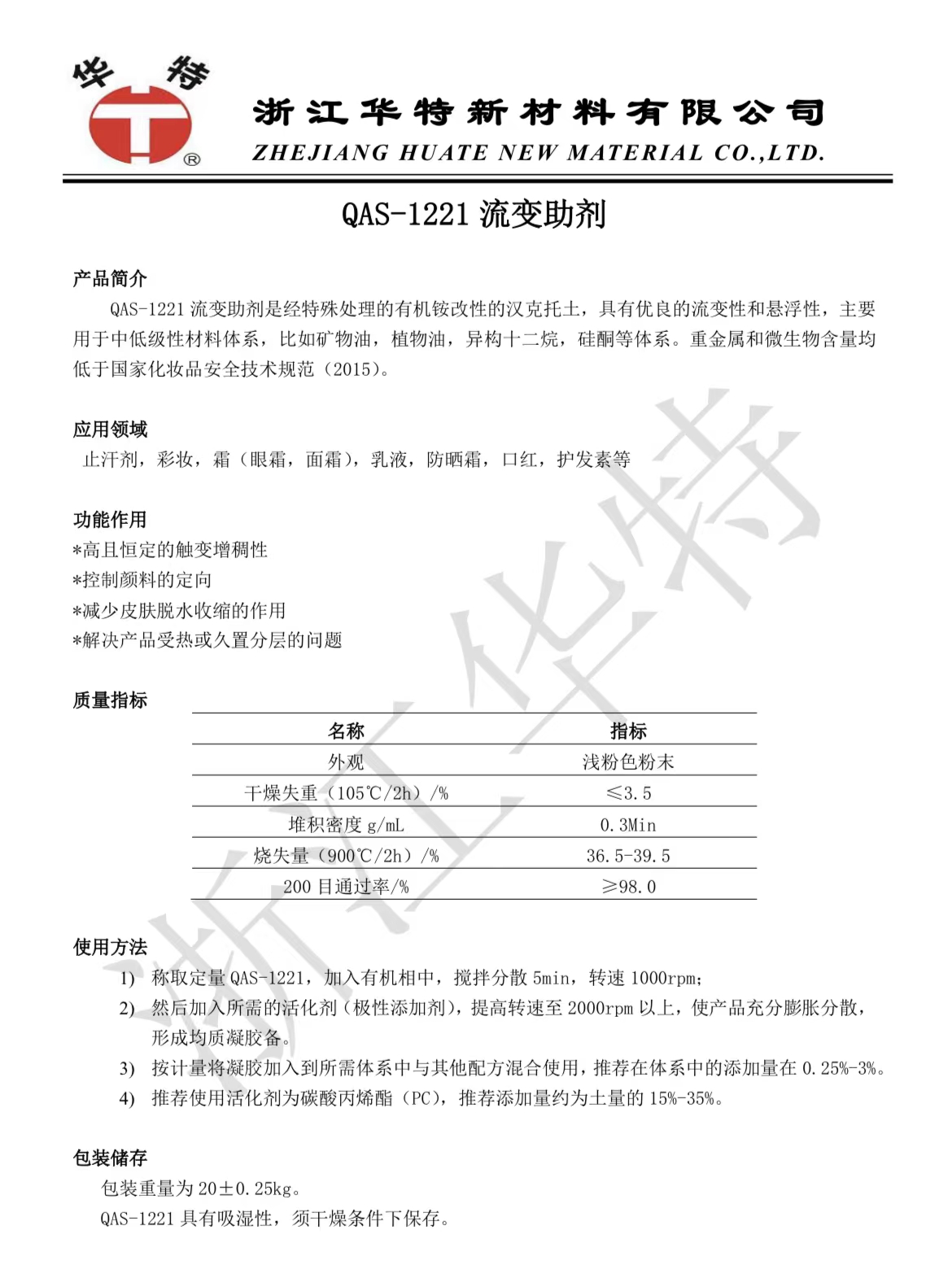 汉克托土QAS-1221二硬脂二甲铵锂蒙脱石化妆品级增稠悬浮颜料定向