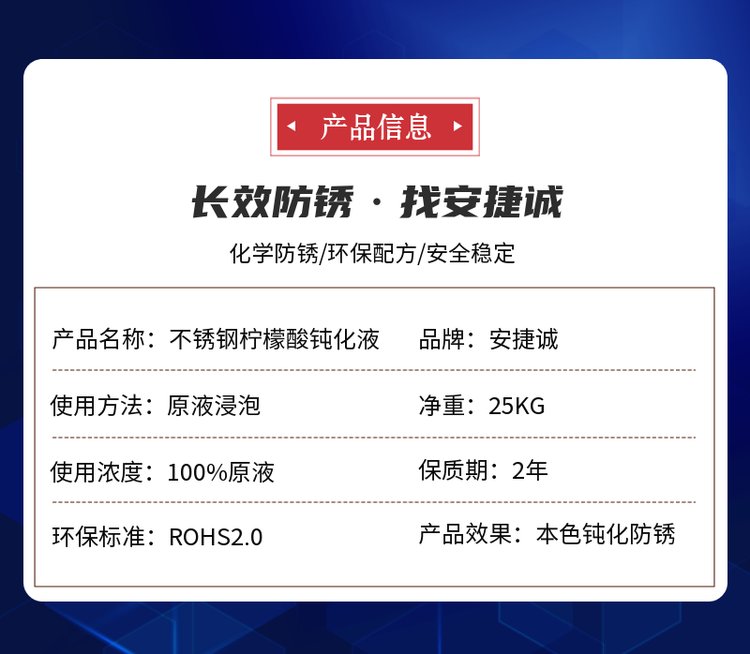 产品名称 | 安捷诚不锈钢柠檬酸环保钝化液 | ||