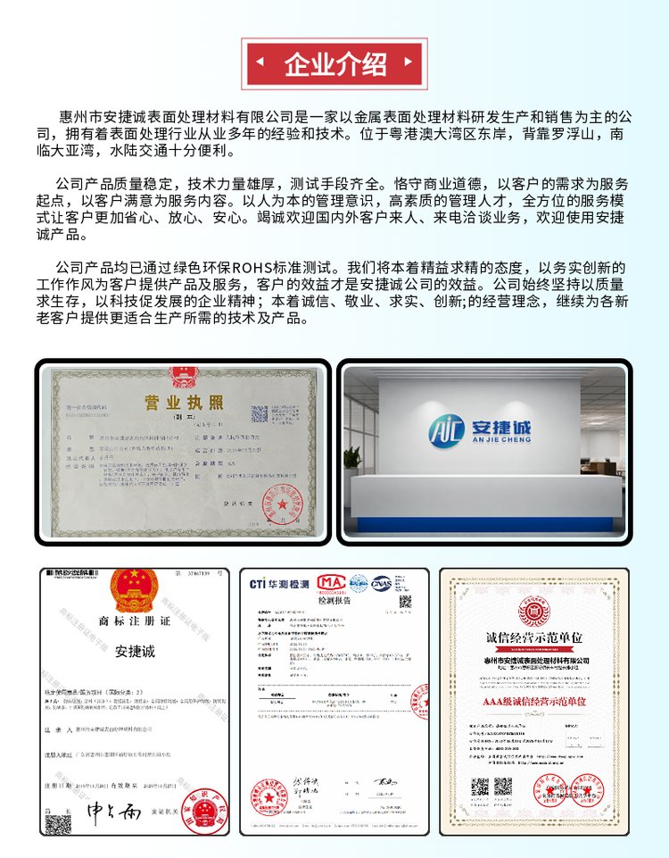商铺名称:惠州市安捷诚表面处理材料有限公司