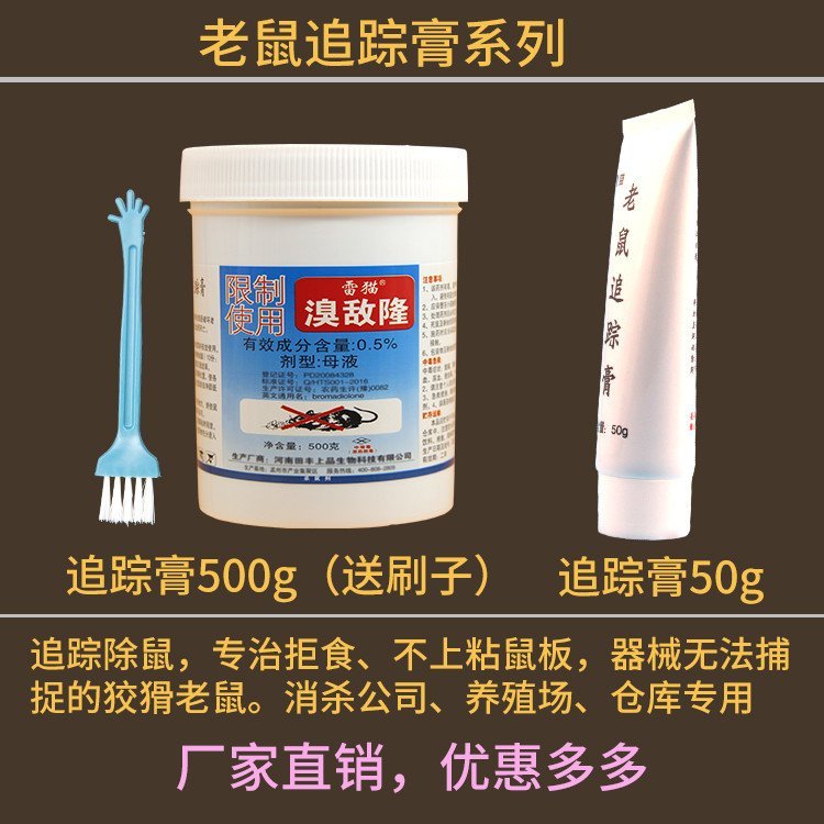 老鼠追踪膏厂家直供,量大从优,养殖场灭鼠和消杀公司灭鼠,可以选择此款产品,每桶500g并赠送有小刷子。