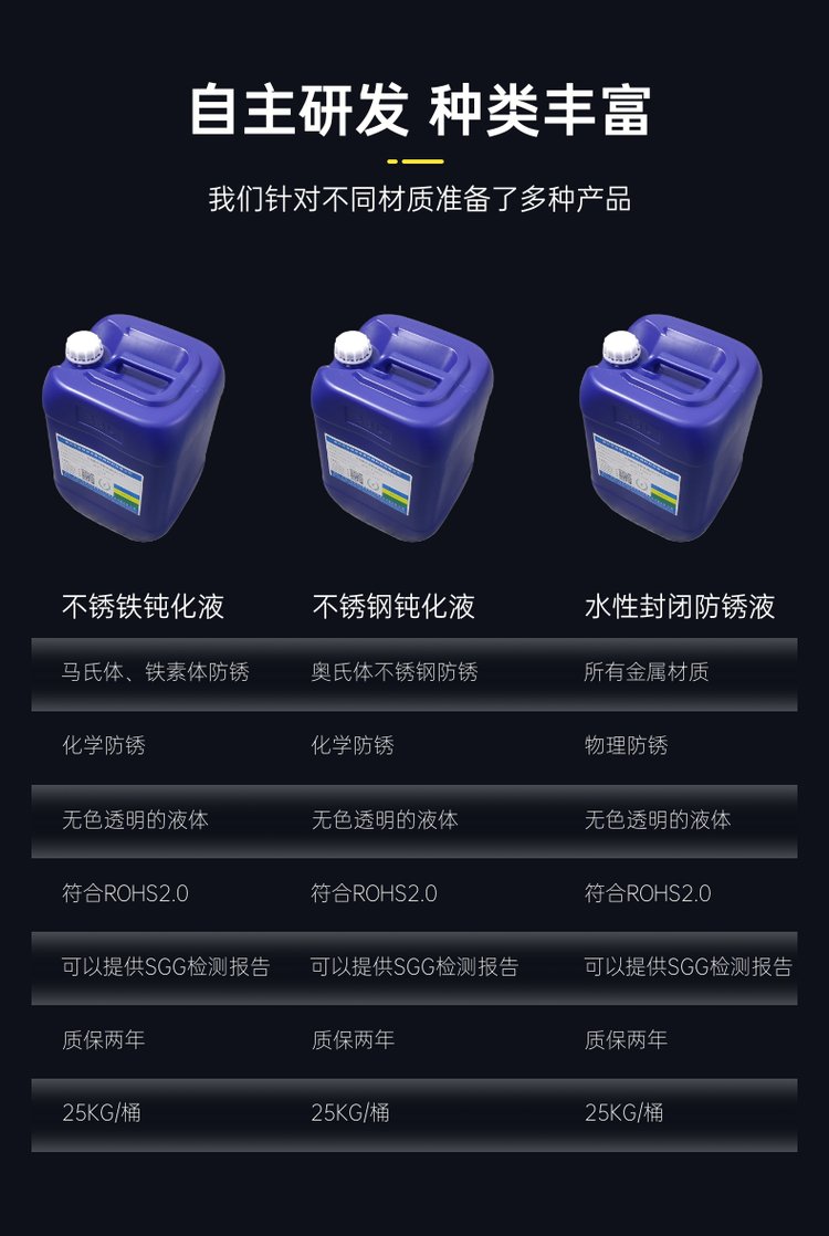 主要用途 | 提高不锈钢防锈抗腐蚀能力,延长盐雾测试时间 | ||
