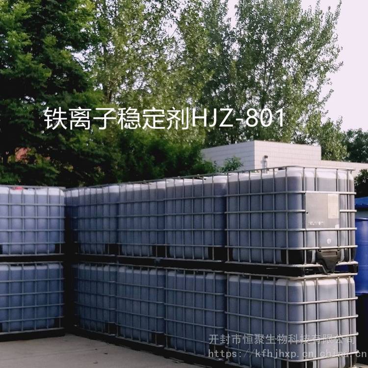铁离子稳定剂HJZ-801主要是防止酸化后铁离子形成Fe(OH)3沉淀。在酸化作业过程中,由于酸液与钢铁表面接触,会形成部分铁离子进入地层,随着酸岩反应的进行,酸液活性会逐渐降低,PH值升高,出现游离铁离子以Fe(OH)3形式沉淀,造成二次污染。在酸液中加入铁离子稳定剂,能有效络合游离铁离子,形成稳定的铁离子络合物,避免二次沉淀产生,提高酸化效果。