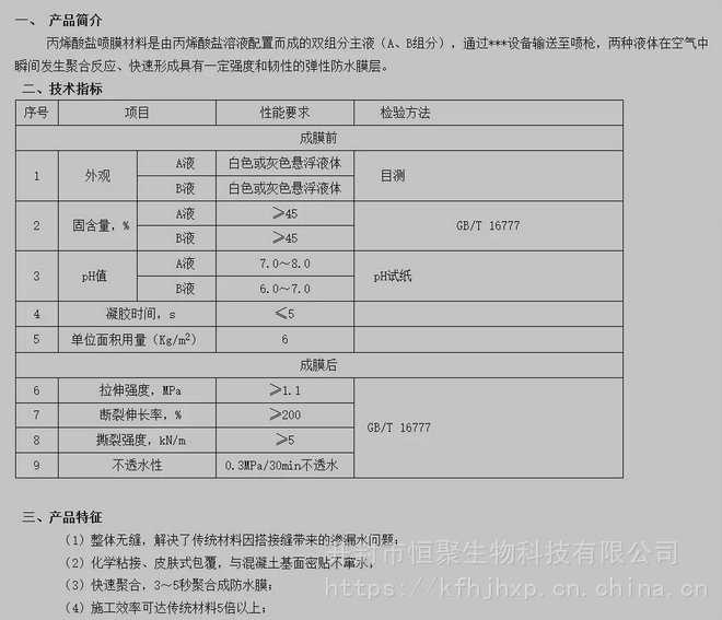 防水产品类别 | 丙烯酸盐喷膜 | ||