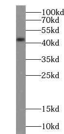 将FNab00321(ACTA1抗体)以1:4000稀释度,使用大鼠骨骼肌组织进行SDS-PAGE凝胶电泳蛋白印记实验。